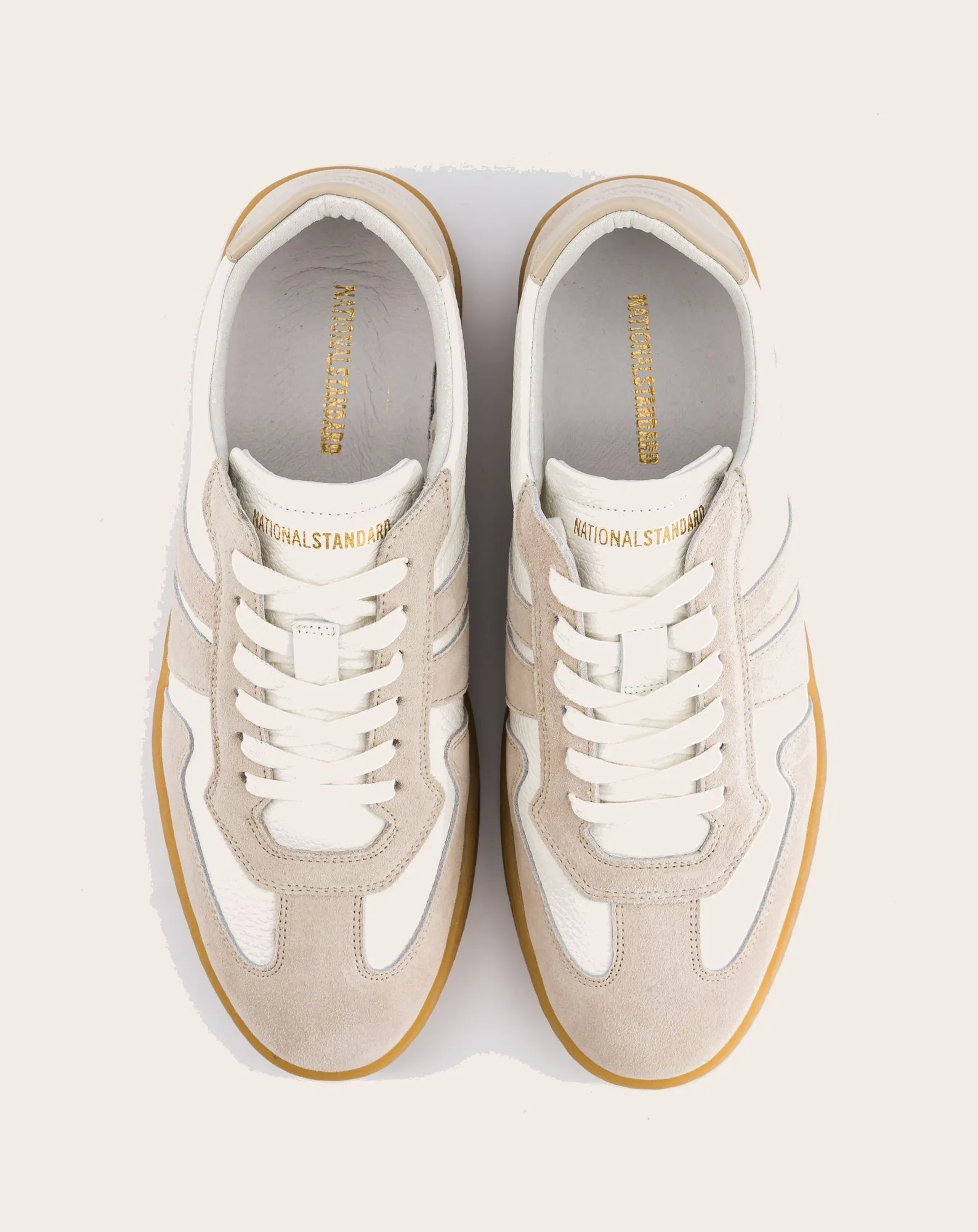 - Sneakers basses en cuir et suède, Semelle gomme Épurée, moderne et intemporelle, cette sneaker basse est pensée pour accompagner le quotidien avec style et confort. Son design minimaliste associe avec élégance cuir lisse blanc et empiècements en suède beige, créant un contraste subtil et raffiné qui s’adapte facilement à toutes les tenues. La semelle en gomme naturelle apporte une touche rétro tout en garantissant une excellente adhérence et une durabilité optimale. Sa construction soignée assure un bon maintien du pied, tandis que la doublure intérieure offre un confort agréable tout au long de la journée. Polyvalente et facile à porter, cette sneaker est idéale aussi bien avec un jean qu’un pantalon plus habillé, pour un look casual chic parfaitement maîtrisé.