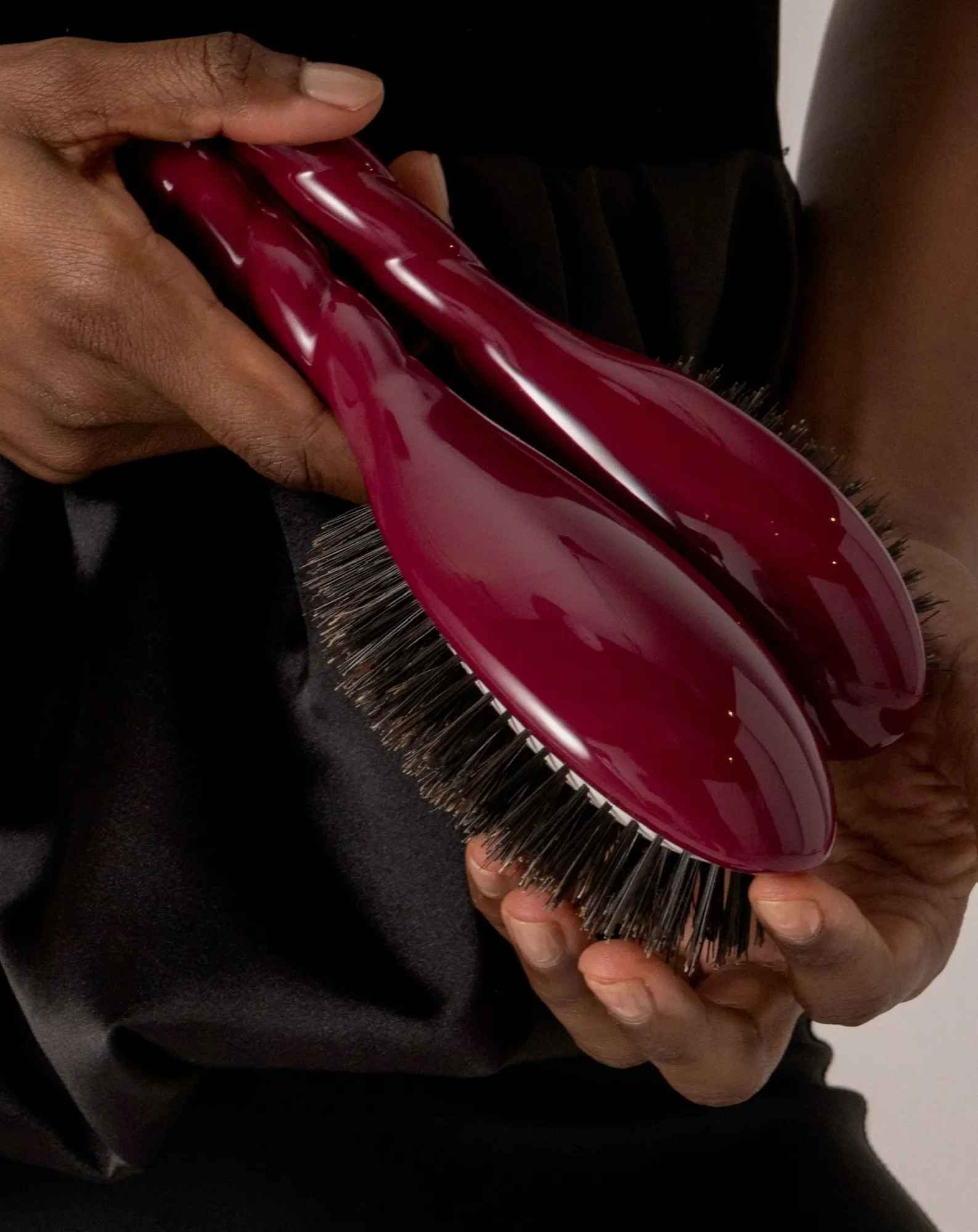 - Riches en kératine, les poils de sanglier prélèvent l'hydratation naturelle du cheveu à la racine et la répartissent équitablement sur toute la longueur de la chevelure, pour hydrater naturellement vos cheveux des racines aux pointes. De plus, la composition structurelle des poils de sanglier de la brosse à cheveux enrobe les écailles de la chevelure de kératine, les resserre pour une fibre capillaire plus forte et résistante aux agressions extérieures (chaleur, pollution). Les cheveux gainés prennent forme plus facilement au coiffage.
