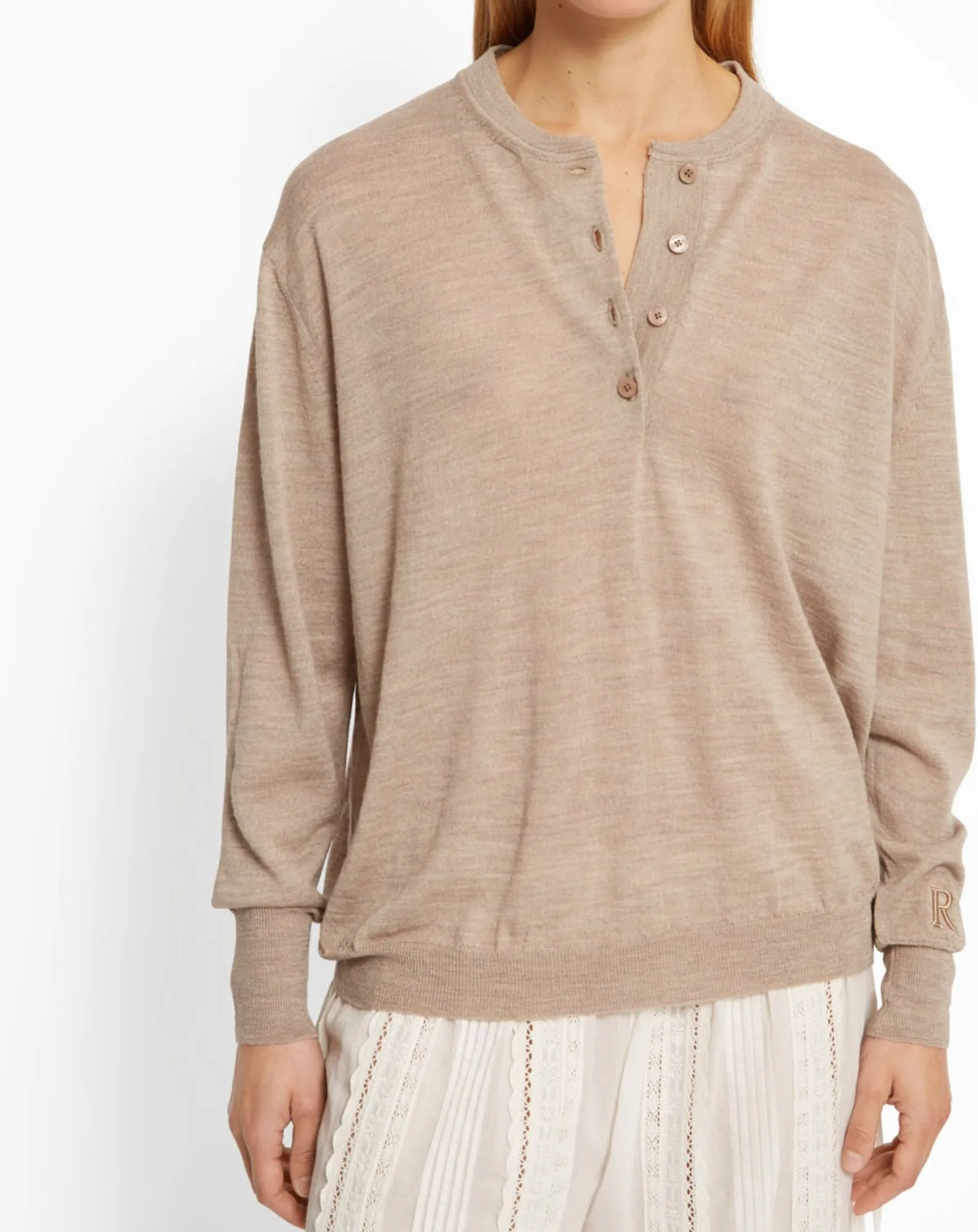 - Maille côtelée Roseanna, modèle ELLA, coloris Beige. Pull en maille jersey à coupe droite qui présente un col polo, une fermetures 4 boutons ainsi qu'un premier bouton gravé Le thème Harmony met en avant des pièces intemporelles en maille fine mérinos tricotée en Italie. Destinées à devenir des classiques, notre modèle iconique Gloss est ornée d'une broderie R ton sur ton en bas de manche, à la fois discrète et essentielle. Cette belle simplicité en fait un incontournable de la saison. Coupe droite Col polo Maille jersey Fermetures 4 boutons Premier bouton gravé Fabriquée en Bulgarie