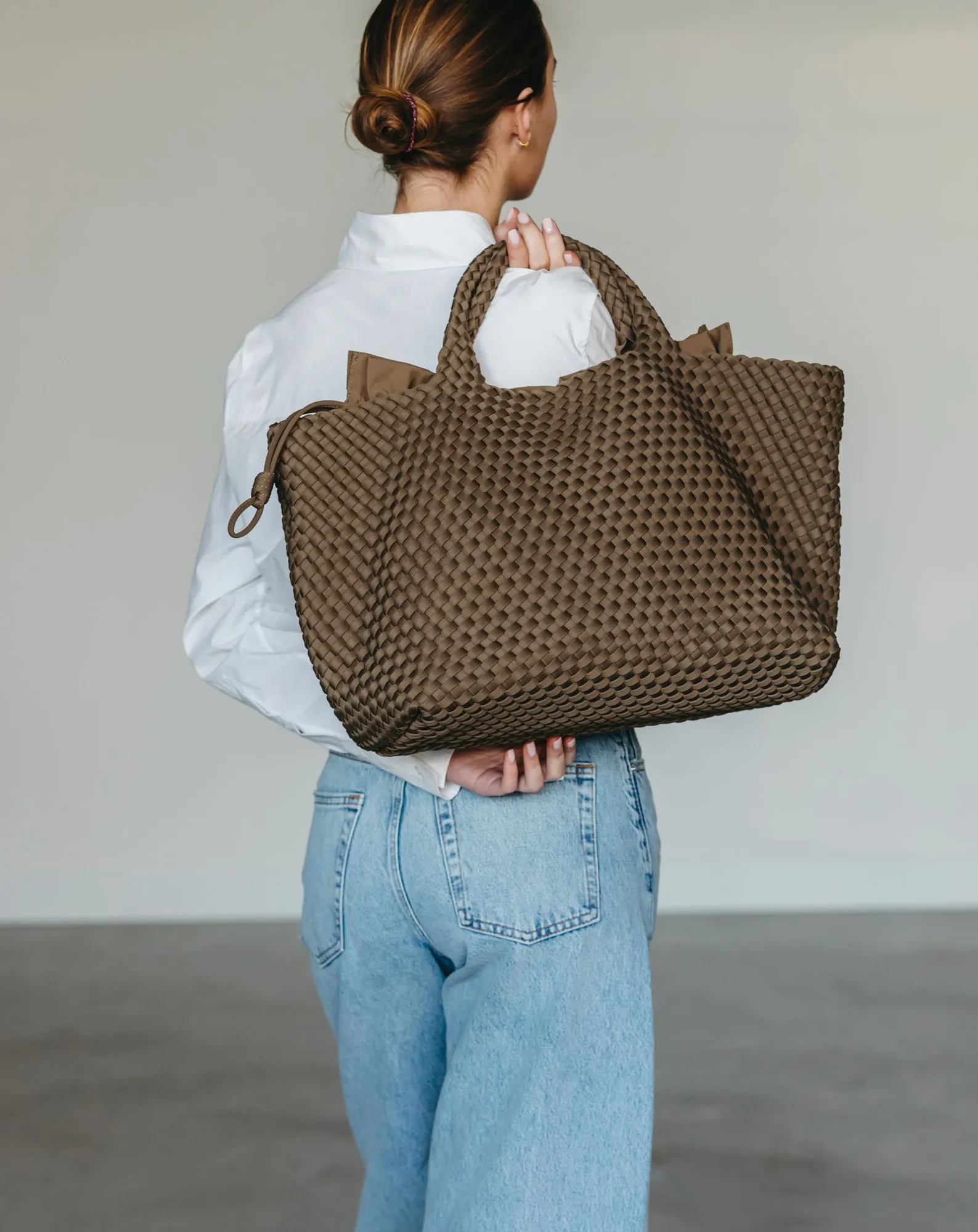 - - Tissé à la main en néoprène - 2 anses supérieures - Sac anti-poussière résistant à l'eau ~ Portez-le dans votre sac MARREA - Accessoires dorés - Fermeture à crochet + Porte-clés