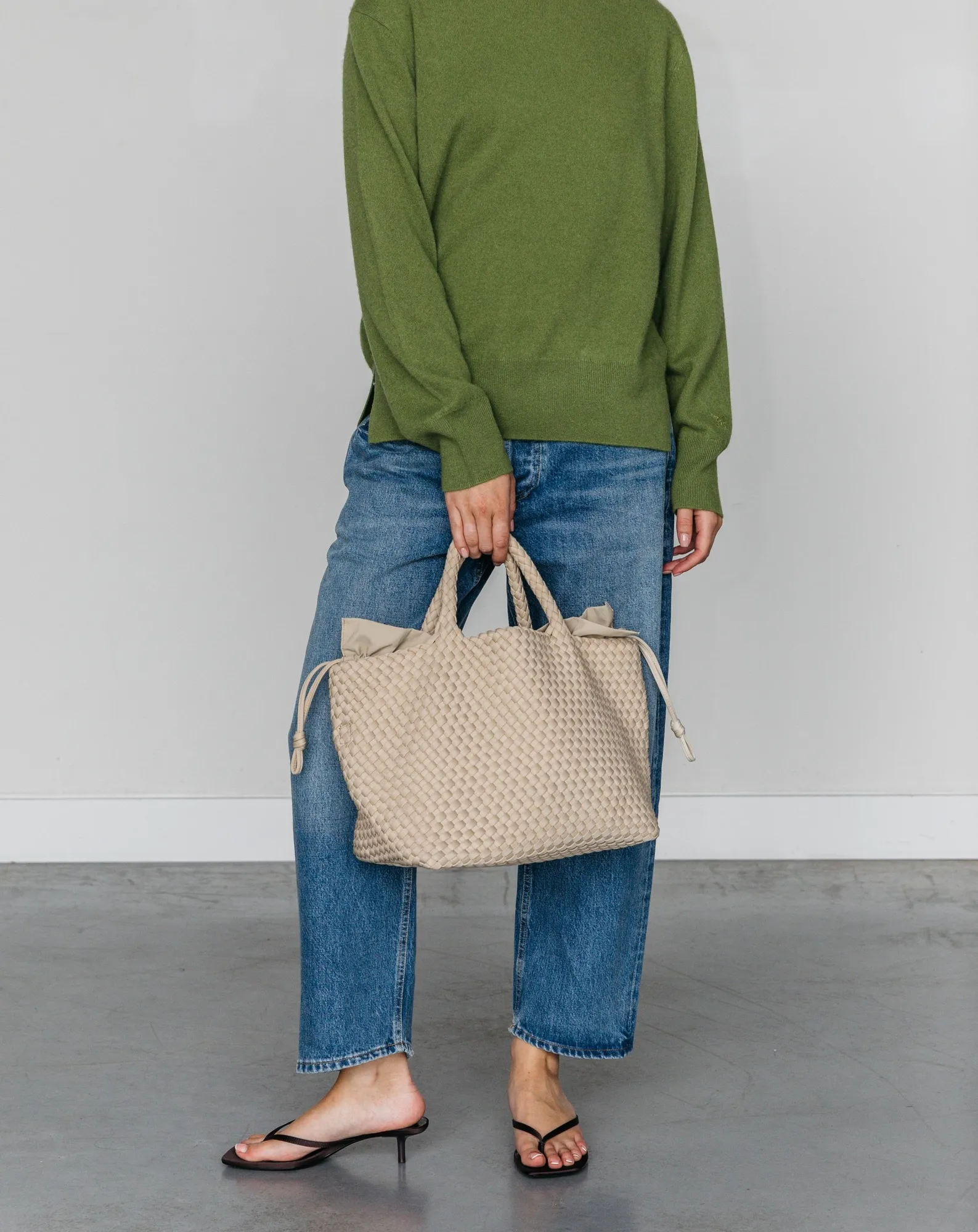 - - Tissé à la main en néoprène - 2 anses supérieures - Sac anti-poussière résistant à l'eau ~ Portez-le dans votre sac MARREA - Accessoires dorés - Fermeture à crochet + Porte-clés