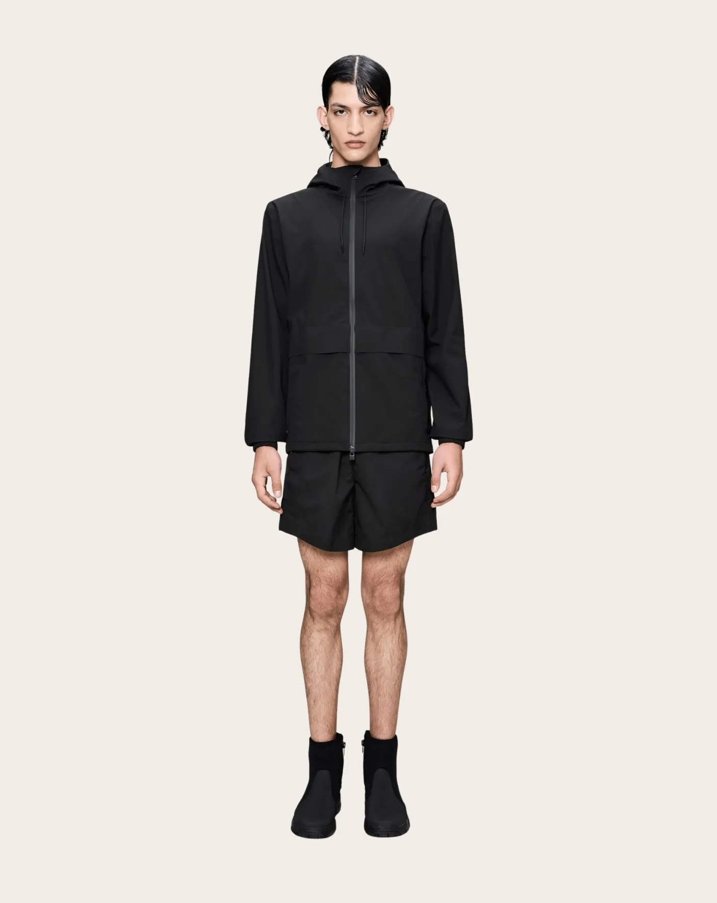 - - Tissu 3L doux et léger - Fermeture zippée enduite imperméable - Capuche à col haut avec cordon de serrage - Cordon de serrage élastique à l’ourlet - Poches avant avec fermeture éclair et bouton-pression visible - Poignets élastiqués - Détail de marque caoutchouté - Coutures étanches - Coupe décontractée